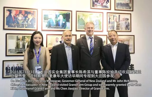 大莊園集團董事長陳希濱與新西蘭貿易部長麥克萊(右二)、阿蘭茨CEO大衛(右一)合影